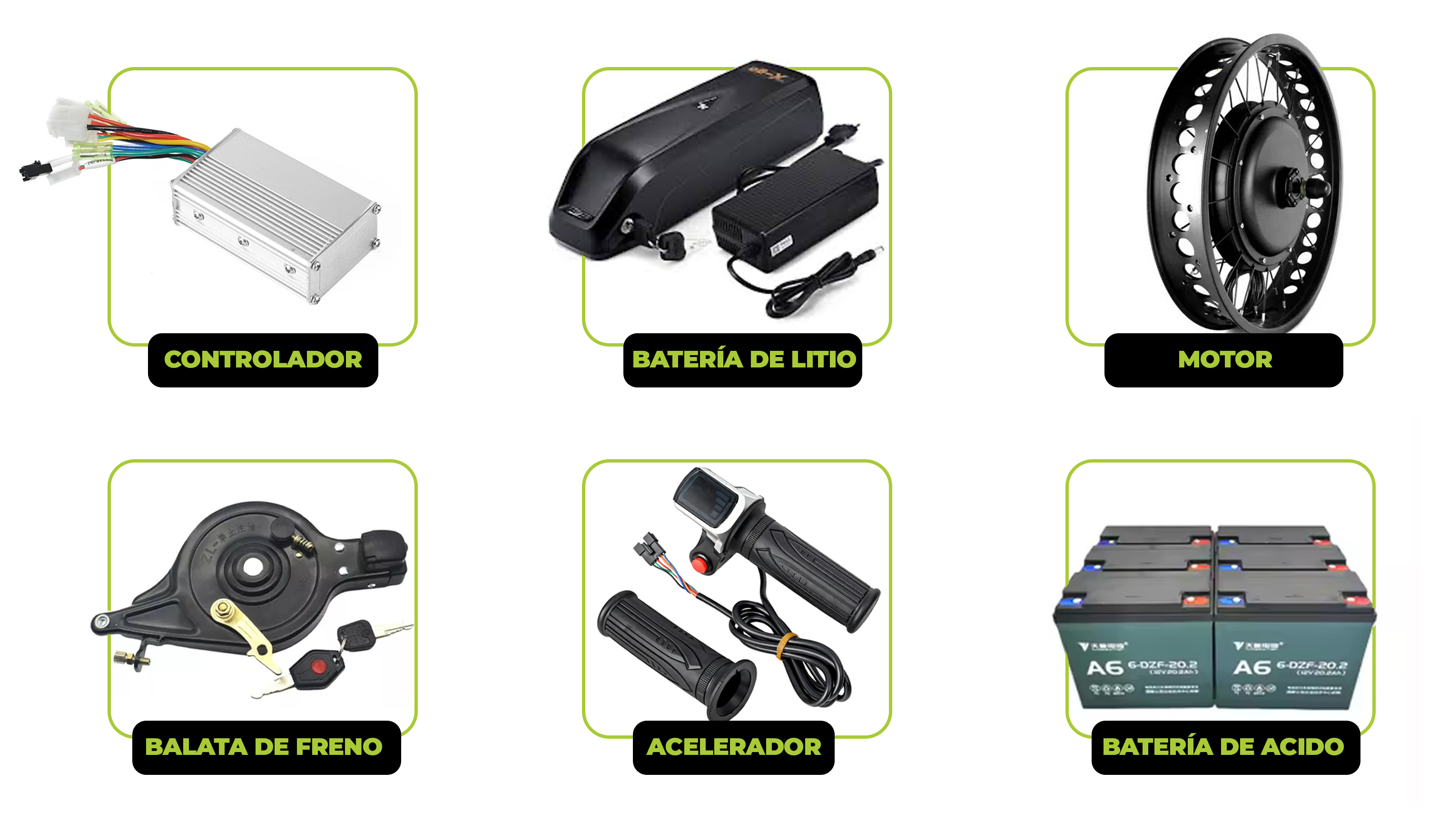 Desde repuestos esenciales hasta componentes para proyectos eléctricos personalizados, ofrecemos una amplia gama de productos para mantener y mejorar la movilidad eléctrica. ¡Todo en un solo lugar!