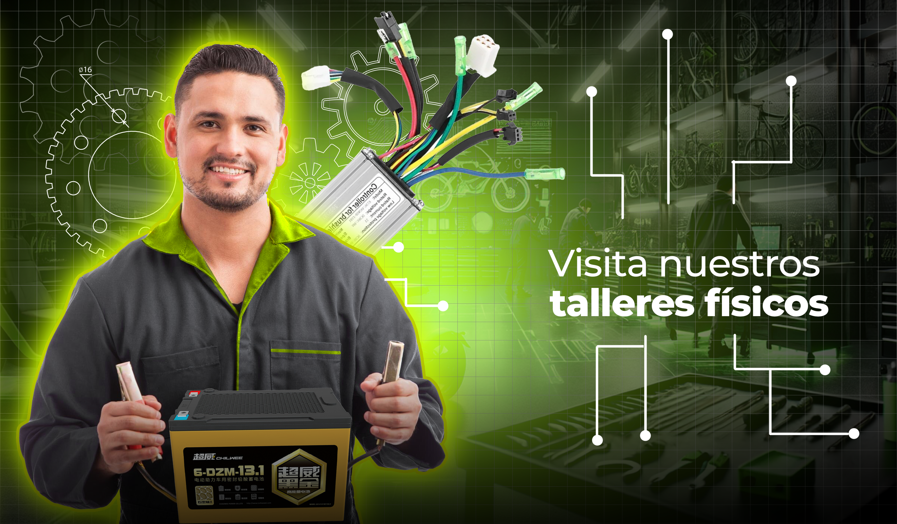 Contamos con talleres físicos en Cochabamba, Santa Cruz , donde ofrecemos servicio técnico especializado para bicicletas eléctricas. Realizamos mantenimiento, reparación y contamos con todos los repuestos que tu bici necesita para seguir en movimiento. ¡Confía en nuestros expertos y mantén tu movilidad eléctrica siempre al máximo!
